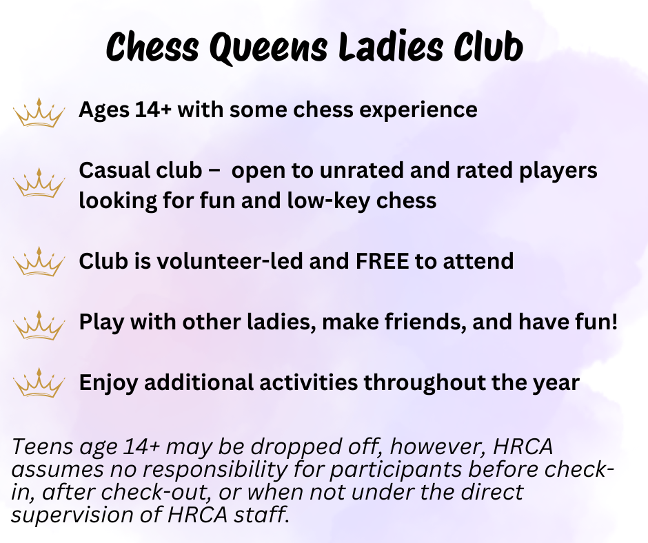 - Girls Club Tuition is $20/month plus a $20 non-refundable registration fee. HRCA membership and ChessKid Gold are now included.