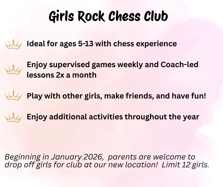- Both Girls Club and Ladies Club are open to all participants who already have a basic knowledge of chess and can play through a game unassisted. If you need a kid’s beginner class, please check out our Guppies and Seahorses classes!